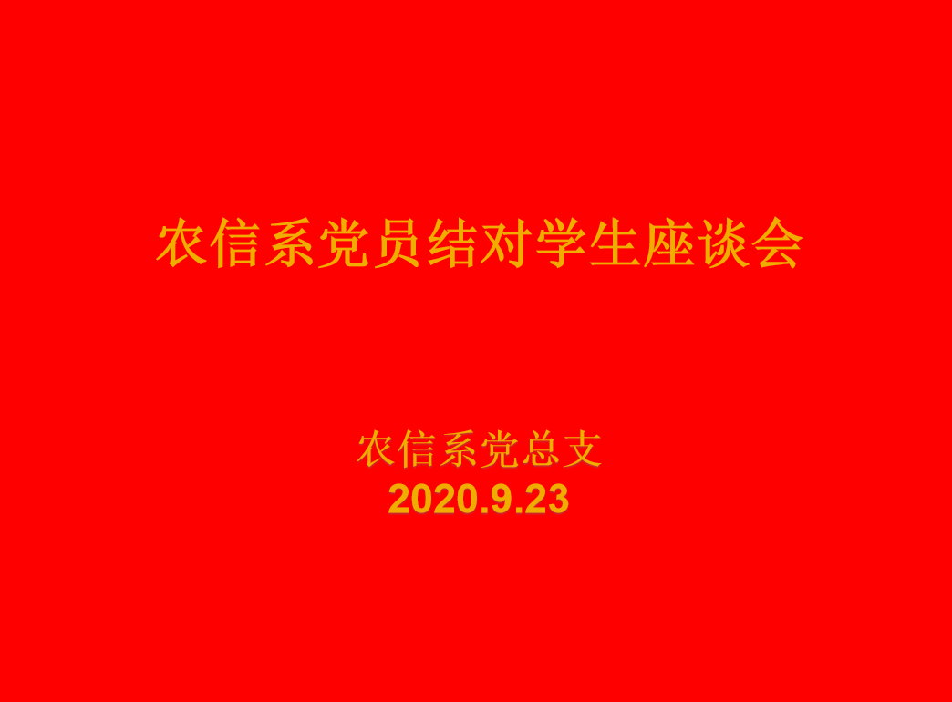 为推进四史学习教育深入开展,结合立德树人根本任务,9月23日中午,农信系党总支在农信楼201会议室举行教师党员结对学生座谈会。党员教师、辅导员、组织员、结对学生参加会议。会议由党总支副书记袁少英主持。