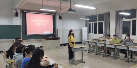 2020年9月23日星期三下午四点半,农业信息工程系在一教413开展了2020年团学干部竞聘大会,本次大会由学生会主席徐书婷主持,系副主任、党总支副书记袁少英和系团总支书记王璐老师以及学生会各部门负责人参与了本次评选工作。