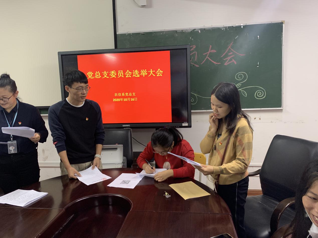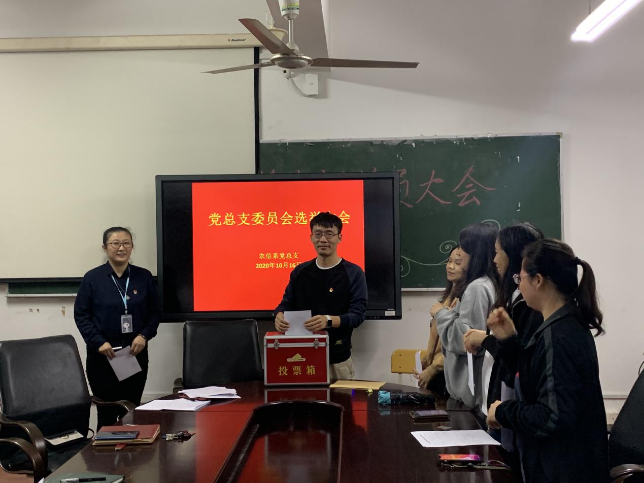 根据《中国共产党基层组织选举工作暂行条例》,结合我院实际情况,农信系党总支于2020年10月16日组织召开党总支委员会选举大会。农信系党总支全体党员出席本次党员大会。