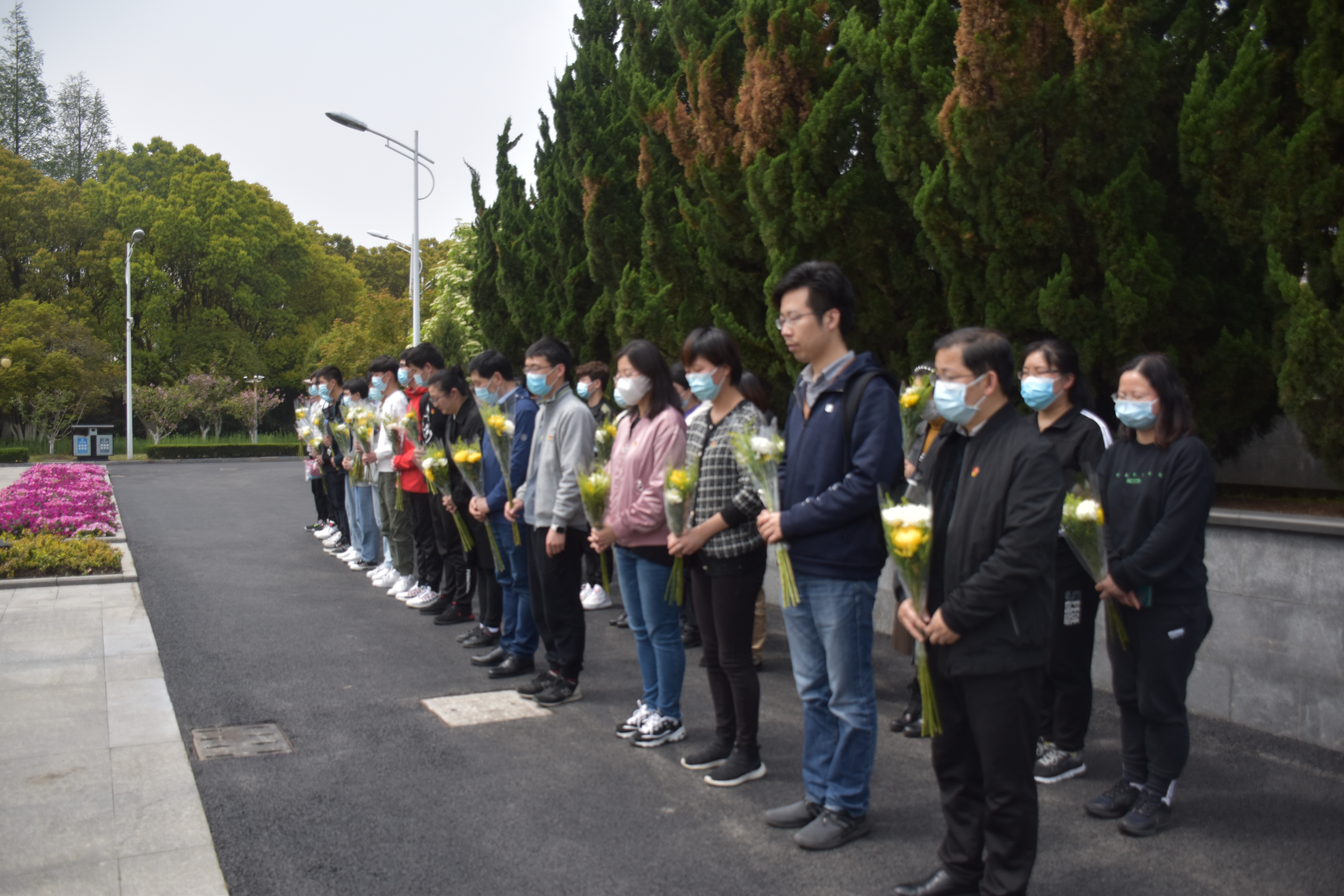 当天下午,全体人员排成整齐的队伍来到松江烈士陵园,在庄严肃穆的烈士纪念碑前,我们为革命先烈敬献花圈,依次排队献花,集体默哀,深情鞠躬,以寄托对革命先烈的无限哀思和崇敬之情。