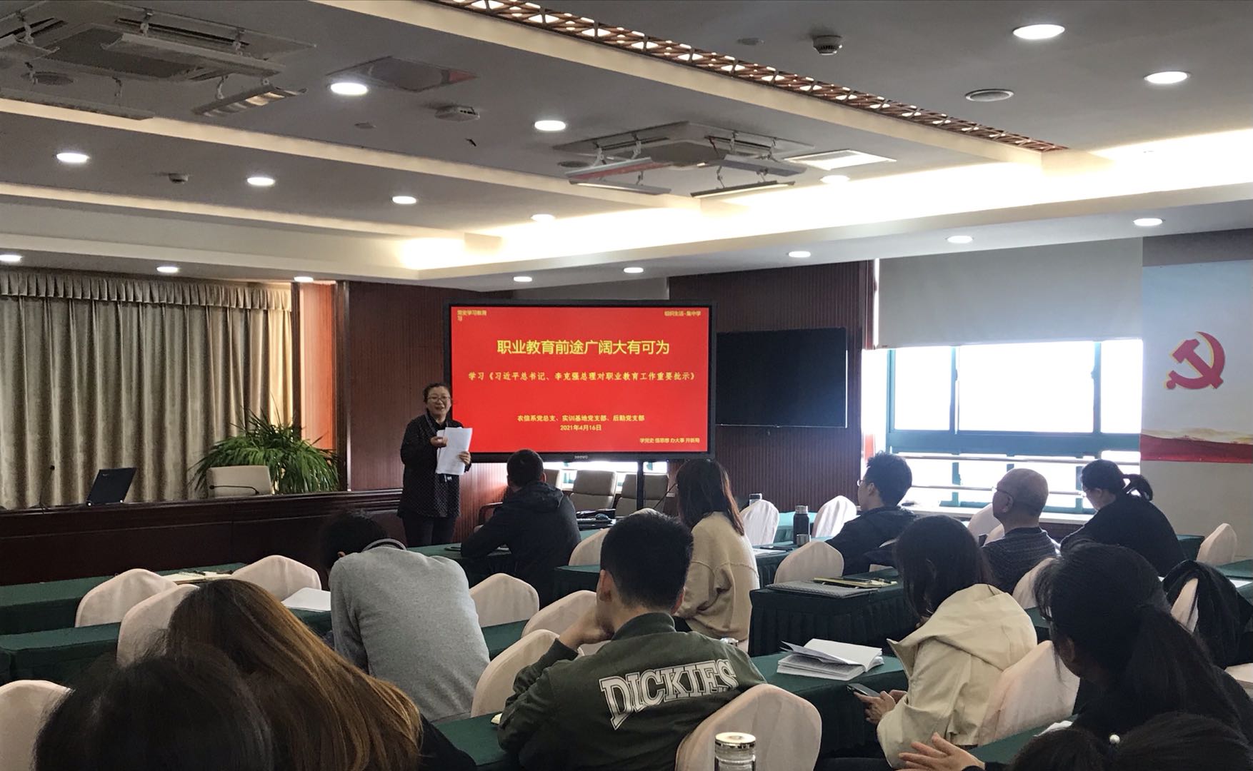 为切实推进党史学习教育,学习贯彻全国职业教育大会精神,4月16日下午,农信系党总支、实训基地党支部、后勤服务党支部采用集中学习、交流研讨的形式召开联合组织生活会。活动由农信系党总支副书记袁少英主持,三个部门全体党员参加。