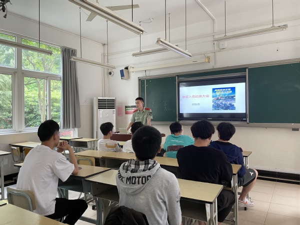 王璐老师首先给同学们讲解了今年应征入伍的优待政策,王璐老师从保留学籍、免修学分、转专业、考研加分、免试读研、选调优待、政法干警招录、专项落户等方面一一进行了讲解。随后三位退伍学生软件191班赵宇峰,软件201班杨子聪和唐勇为应征的同学们分享了自己在部队的经历。三位退伍学生都讲到,参军前我们需要做好心里准备,准备好应对高强度的训练。同时也给同学们详细分析了军队每年都在提升的待遇有哪些,鼓励大家参军入伍,给出了很多实用的建议。三位学长们的话让同学们豁然开朗,热血澎湃。王璐老师说:“希望大家能够积极应征入伍,实现人生价值,完成自己的军旅梦。”