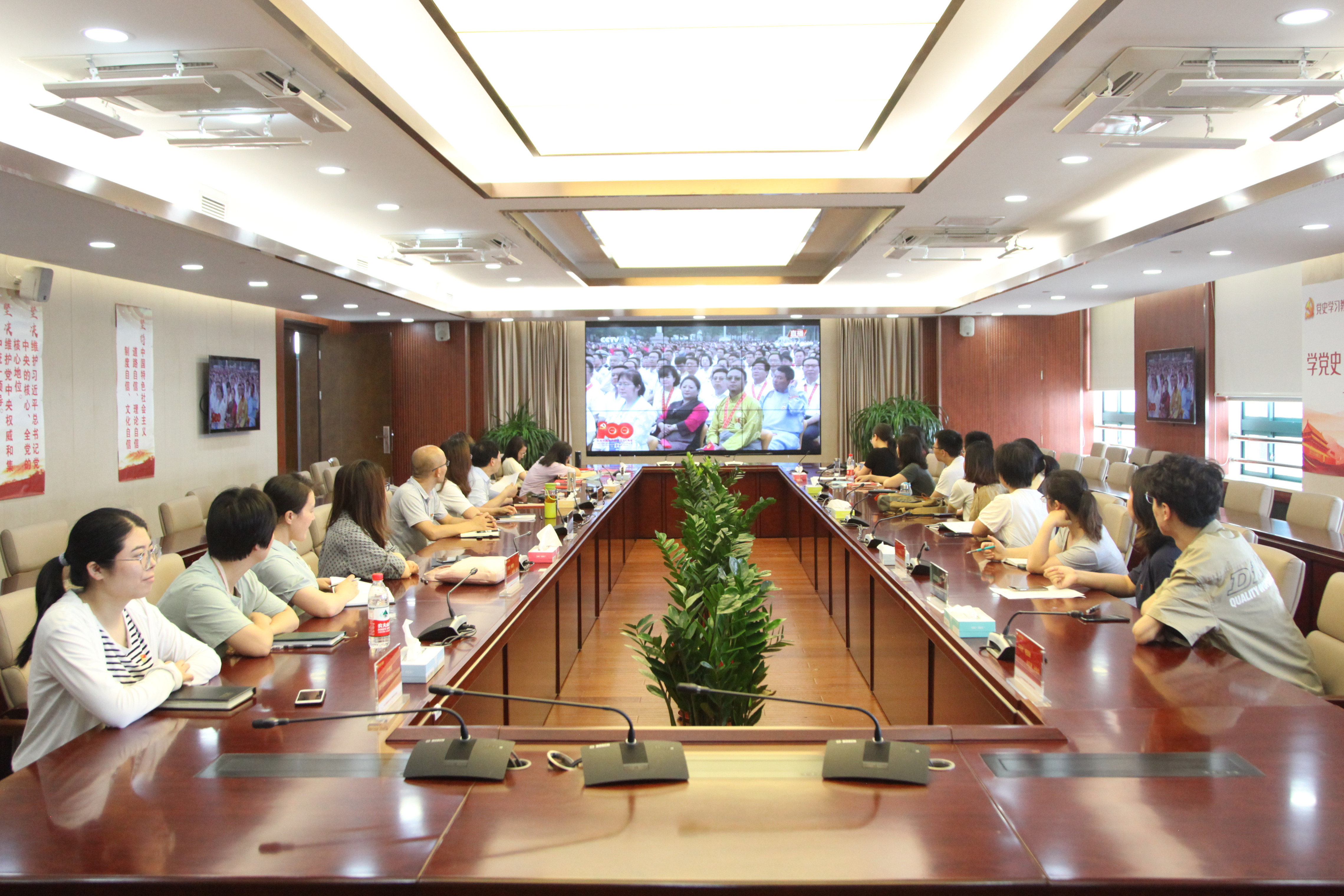 7月1日上午8时,庆祝中国共产党成立100周年大会在北京天安门广场隆重举行,中共中央总书记、国家主席、中央军委主席习近平总书记发表重要讲话。农信系党总支在第一会议室集体组织观看现场直播,党员教师、入党积极分子纷纷向党的百年华诞致以热烈的祝贺,并表示要坚定不移地听党话、跟党走。
