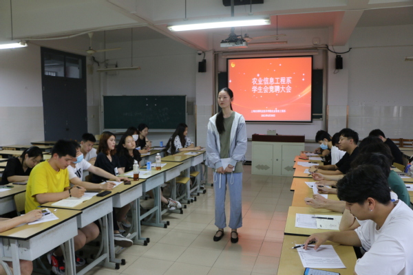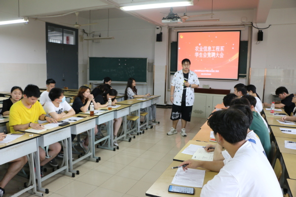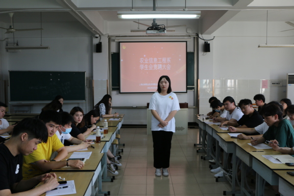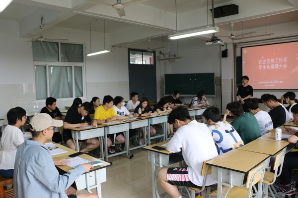 2021年6月30日下午4点15分,农信系在一教413举行了20级团学骨干竞聘大会,本次大会由学生会主席吴浩哲主持,农信系党总支副书记、副主任陆琳老师、农信系团总支王璐老师、19级各部门部长以及各班级代表担任此次活动评委。