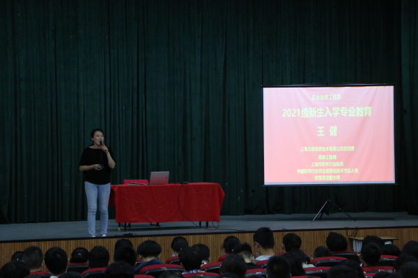 为做好新生专业教育工作,帮助农信系新生尽快了解所学专业,适应大学学习生活,高效开展专业学习,树立新的奋斗目标,10月11日上午在学院大礼堂,农信系对2021级313名新生开展专业教育,活动邀请上海合颂信息技术有限公司总经理、现代设施农业技能大师工作室专家王健进行专业介绍,由农信系副主任王妍主持。