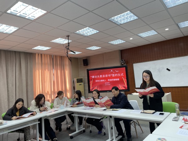 为加强党风廉政建设,进一步推进教师廉洁从教意识,智工系党总支于12月3日在综合楼402录播室开展了“坚持立德树人、争做时代楷模”廉洁从教承诺书签约仪式,会议由智工系党总支副书记、副主任陆琳主持,智工系全体教职工参加。