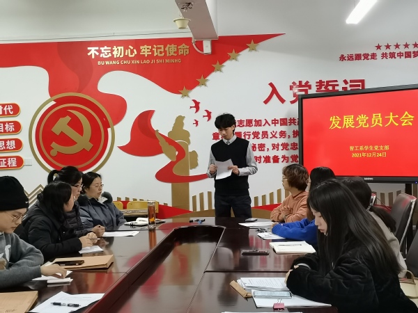 为加强党的队伍建设,做好发展党员工作,12月24日上午10点,智工系学生党支部于农信楼201召开发展党员大会,智工系学生党支部全体成员以及发展对象入党联系人、发展对象参加了此次会议。会议由智工系学生党支部书记王璐主持。本次大会讨论并通过无记名投票的方式表决了吴浩哲、郑世豪、谢思敏、马雪银等四名发展对象的入党问题。