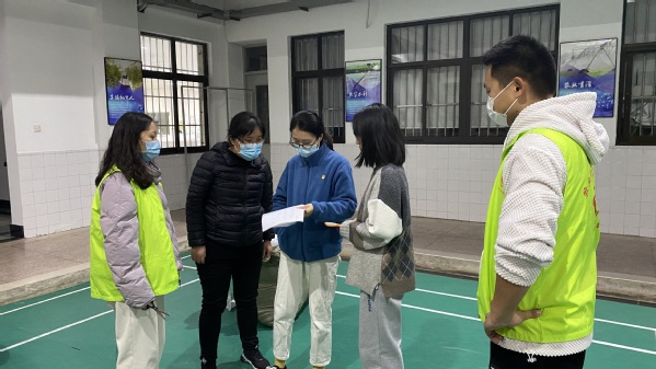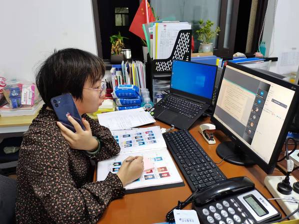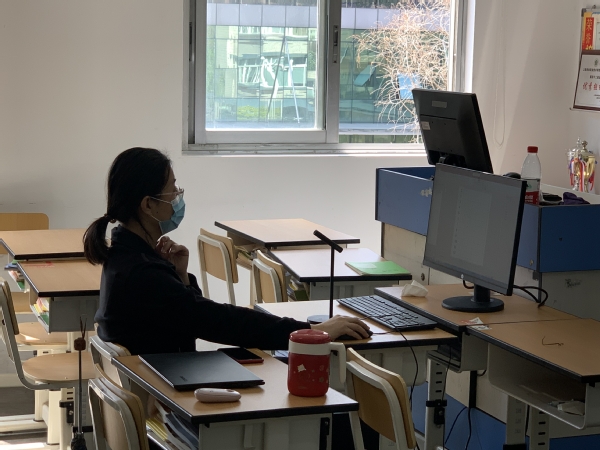 上午8:00驻扎在农信楼的谢伶俐和王妍走访每一个教室,查看教室的卫生情况,精准统计并上报今日加餐及洗澡人数,做好人员用餐及分流工作。及时帮助同学们排解学习、生活等问题。此时,封控在不同地方的老师也在为网课做准备了,虽然教室里没有了学生,但是老师们却一如既往带着满腔育人情怀,让网课融入彼此的爱。