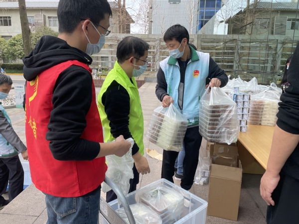 早上7:00工会小组长徐杰带领教师志愿服务队为智工系全体教师送上热乎乎的早餐。由于智工系教职工封控在不同的楼里,教职工纷纷表示可以派代表到楼下拿早餐,避免徐杰老师过于辛苦。但是徐杰老师不辞辛苦,坚持把早餐递送到每一位教工的手上。