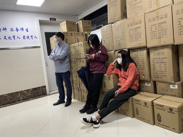 中午12:00第一批学生的生活物资已到位,为保障在校学生能够第一时间收到生活物资,智工系党总支副书记陆琳亲自带领学工队伍以及志愿者们到农信楼为同学们发放生活用品,住校的走读学生在得知现在物资紧缺,他们优先享用的时候,纷纷挑选出自己不紧缺的生活用品,他们希望可以留给更加需要的同学们,我们共享生活用品,共待春暖花开,疫情解散。