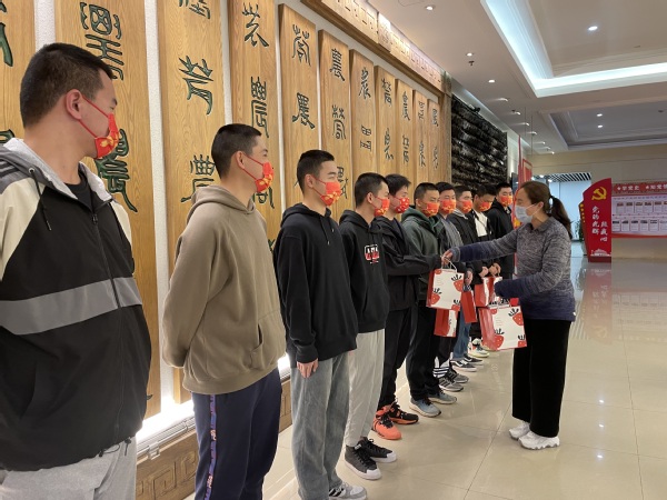 3月15日原本是今年上半年应征入伍学生走兵的日子,但是我们学院却因为疫情进入了封闭管理状态,应征入伍学生疫情集训及走兵也都耽搁了。为了安抚应征入伍学生的情绪,鼓励同学们树立抗疫必胜的信心,3月21日中午12点,智工系党总支在综合楼一楼慰问了上半年应征入伍学生,智工系主任孙修东、党总支副书记陆琳、副主任王妍、辅导员以及在校的应征入伍学生共同参加了此次活动。