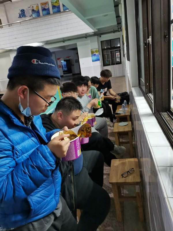 3月10日凌晨4点,学校分发了13个睡袋,智工系首先安排给了走读的13位女生,当天下午学校紧急发放了床垫和被子,所有的走读学生开始按照老师们的安排入住到了各个教室。但是时不时还会有埋怨的声音传出,辅导员们开始一个一个给同学们做心理疏导,给家长们沟通联系学校的疫情防控情况,按时安排学生们的一日四餐,有序组织同学们排队洗澡、做核酸。渐渐地,同学们当中有人自发地当起了志愿者,也有人在自己的小屋里开始布置起来,同学们开始享受这里的生活。