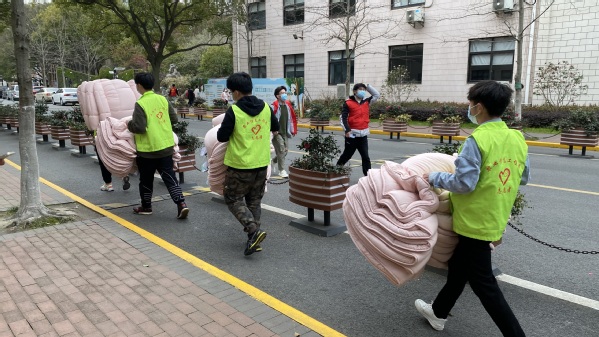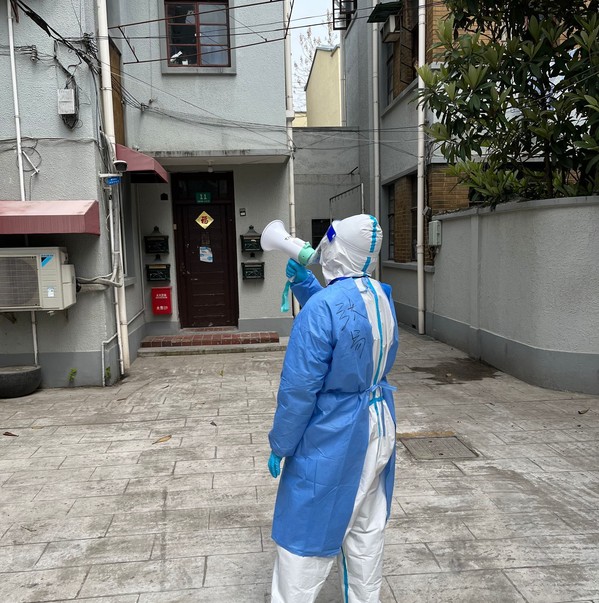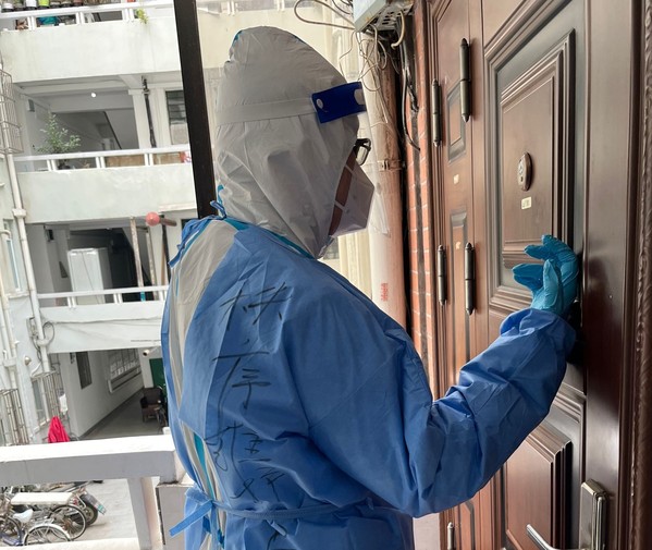 智工系学生党支部的入党积极分子在党组织的带领和号召下也不甘示弱,无论在哪里,都有他们志愿服务的身影。在校期间他们迅速集结,有序分工,无论是走读学生入住的农信楼机房还是封闭管理的宿舍楼,都有“绿马甲”的身影:每日送餐,搬运和发放物资,维持核酸检测队伍秩序,出入人员登记,组织排队洗澡等,“绿马甲”成为疫情防控网格化管理中的一条条细线,密织出疫情防控的屏障。返回家后,他们又迅速在自己的社区报到,活跃在社区疫情防控的一线,软件高本201班张易就是其中一员。张易的工作是挨家挨户通知社区楼栋的居民出来做核酸。社区的抗疫和学校的抗疫是有所不同的,年龄层较大,人员也较复杂。面对社区老年人居多的情况,张易在上门通知居民做核酸采样的同时,也会帮他们登记好健康云。面对弄堂里的外国人,张易在通知之前就做了一定的功课,提前学习防疫的常用英语,以便随时解答他们的问题。带着防护面具上下楼喊口号很快就会把眼镜和防护面具全粘上雾气,外加有些老房子的楼梯比较陡峭,光线也比较昏暗,上下楼变成了在黑夜中摸索。但是张易也想到了一个好方法,通过打开自己的手机的录像功能贴近自己的面罩来看路。克服了种种困难之后张易讲到:这次抗疫活动让我深刻的理解了什么是“为人民服务”。其实很简单,就是群众有需要的时候,党员、团员很自然的先上。这就是中国共产党的力量源泉所在,这就是我们中国共产党为什么能的最好解释。