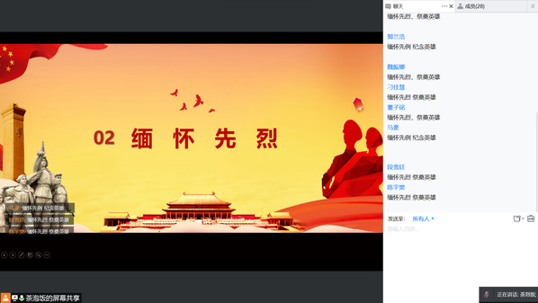 智工系各团支部通过腾讯会议,集体云参观了上海市龙华烈士陵园纪念馆,在线上缅怀革命先烈,向先贤先烈鞠躬献花,送上真挚的感言寄语,“在这个特殊的的清明节,我们用‘云祭扫’的方式,慎终追远,为停留在寒冬与烈火里的人默哀,缅怀那些用生命践行初心的英雄们,感谢你们用生命守护我们的生命。请先烈们放心,吾辈将铭记你们的牺牲和奉献,奋发图强,肩负起时代使命。”字里行间充满无限的缅怀、感恩和敬仰。