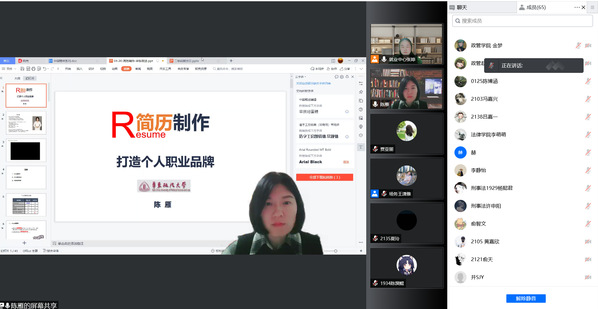本次活动特邀请到上海视觉艺术学院副教授、上海市就业指导志愿专家团专家陈雁担任主讲人,陈教授以“什么是简历?”、“什么是好简历?”、“简历自评标准”三方面展开介绍,引导同学们在制作简历的过程中要把握基本信息“三要素”,要学会对照企业招聘要求、突出重点地制作自己的简历,同时要学会提前规划、及时更新、随时准备,在简历自评中学会整理思路,认识自己,从而提高自己。最终达到打造个人职业品牌的目的。