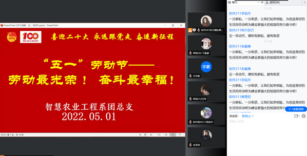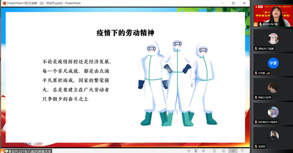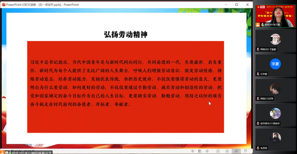 “五一”国际劳动节是全世界无产阶级、劳动人民共同的节日,在前期开展劳动育人主题教育宣讲的基础上,为引导学生对劳模精神、劳动精神和工匠精神做到内化于心、外化于行,5月1日,智工系团总支线上、线下组织开展“劳动最光荣 奋斗最幸福”主题教育实践活动,同学们通过观看全国劳模纪录片和学习习近平总书记关于劳动的重要讲话端正劳动观念,结合家务劳动或美化宿舍环境践行劳动教育。
