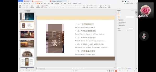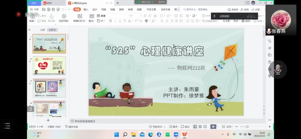 在各班开展的心理班会和心理讲座中,各班以“同心抗疫 从心做起”为主题,通过PPT讲解、视频播放和互动等形式展开,内容涵盖生常见心理问题、心理健康判断标准、心理问题解决方法等多个方面。各个班级形式多样,内容丰富,共计开展16场心理班会,6场心理讲座,心理班会和讲座得到了学生的积极响应。同学们获益匪浅,纷纷发表感想。软件211班范宇航分享到“通过这次心理班会, 我对心理健康有了比较大的认识。心理问题不容小视,作为学生的我们应该保持乐观的情绪、愉快开朗的心境,对未来充满信心和希望,当遇到悲伤和忧愁的事情要学会自我调节,适度地表达和控制情绪,做到胜不骄、 败不馁、喜不狂、忧不绝;保持和谐的人际关系,乐于与他人交往,在交往中能用理解、宽容、友谊、信任和尊重的态度与人和睦相处;与此同时还要保持良好的环境适应能力以及浓厚的学习兴趣和求知欲望。在今后的道路上, 我们要以良好的心理素质迎接挑战,为国家的富强奉献自己的青春。”软件211班陈晨分享到:“心理健康是大学生掌握文化科学知识的重要保证,有了良好的心态,不仅能取得好的学习效果,而且有益于终身的发展。如果离开良好心理的培养,就培养不出具有先进文化知识的合格大学生。只有健康的心理素质和健康的生理素质相结合,加之其他积极因素的相互作用,大学生成才就有了可靠的内在条件,一颗颗人才的新星就有可能升起。“少年强,则国强;少年弱,则国弱,少年胜于欧洲,则国胜于欧洲;少年雄与地球,则国雄于地球。”梁启超先生这一名言震荡着一代代年轻大学生的心灵,我们大学生要以良好的心理素质迎接未来的挑战,为国家的富强奉献自己的青春。”物联网202班有同学分享到:“心理班会,教会了同学们如何在当下疫情严峻的情势下不要有太大的压力,即使有负面的问题消息应该怎样去释放压力转移注意力,使我们疫情封校的在校生活不再有压力。”