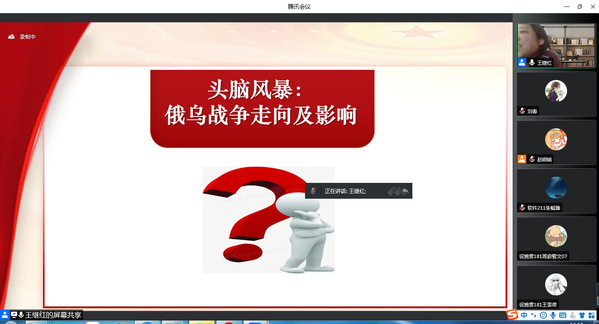 以人民为中心的发展思想是习近平总书记在党的十八届五中全会中提出的治国方针理论,也是马克思主义政治经济学的根本立场,王继红以习近平总书记在庆祝中国共产主义青年团成立100周年大会上的重要讲话为切入点,从身边事、国家事和世界事三个方面展开团课,帮助同学们理解以人民为中心的思想内涵。第一,身边事,自3月9日疫情以来,学校无论是封闭管理还是准封闭管理阶段,同学们保持积极乐观的心态,认真上网课、参加各类团学活动,展现出当代大学生健康向上的青春风采;如今上海打响疫情保卫战,加快复工复产、复商复市,一切向好发展。第二,国家事,人民大学退出国际大学排名,维护中国教育主权和文化主权;在民族复兴征程中广大青年砥砺奋进,习近平总书记在庆祝中国共产主义青年团成立100周年大会上的重要讲话令人振奋;党的二十大即将召开,开启多途径鼓励民众建言献策,国家发展质量不断提升。第三,世界事,新一轮科技革命和产业变革竞争,发展鸿沟日益突出,俄乌冲突、北约问题、西方分化重组选边站队等国际问题突出,正如习近平总书记在2019年新年贺词中所言,放眼全球,我们正面临百年末有之大变局。无论国际风云如何变幻,中国维护国家主权和安全的信心和决心不会变,中国维护世界和平、促进共同发展的诚意和善意不会变。最后,就多难何以兴邦、如何实现中华民族伟大复兴的中国梦、行动的路径等问题师生展开互动交流。
