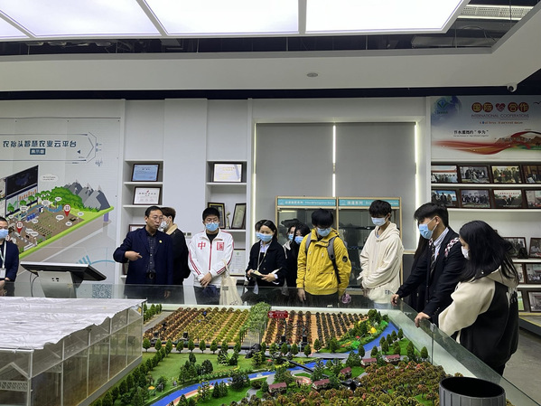 紧接着是现代农业装备展示中心。内设智慧灌溉演示沙盘,中央智慧气象站,大屏幕演示器,灌溉首部枢纽,过滤系统,全自动施肥系统等,用实物展览,工程实景与视频教学结合方式,完整展示现代智慧农业灌溉系统。采用龙抬头智慧农业云平台,现场进行智慧演示,沙盘灌溉及智能优势功能控制。程仲谋副总经理生动专业的讲解为同学们上了一堂精彩的专业实践课和课程思政课,极大地激发了同学们投身现代设施农业,服务乡村振兴的热情。