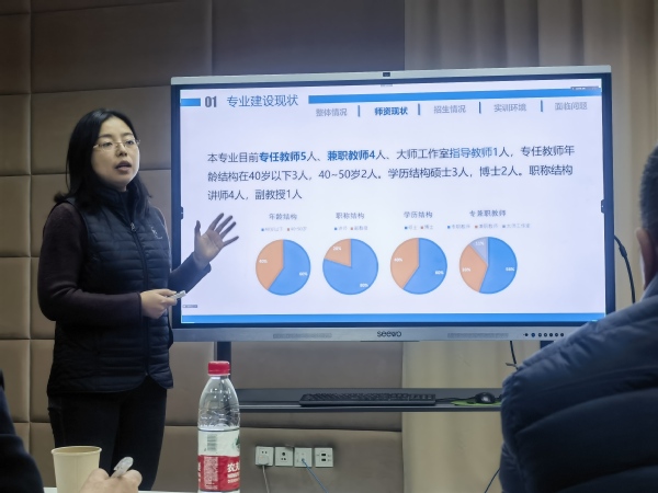 张江、校外专家认真听取了各专业负责人的汇报,并对汇报内容进行了点评。校外专家对各专业的定位明确、目标清晰、措施可行等表示肯定,并对各专业未来的发展规划、课程资源建设、教材开发、专业教学团队组建、深化校企合作、社会服务水平提升等方面提出了建议。