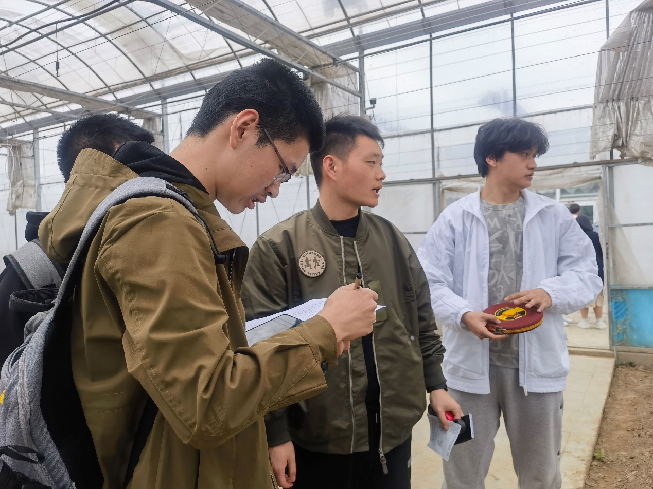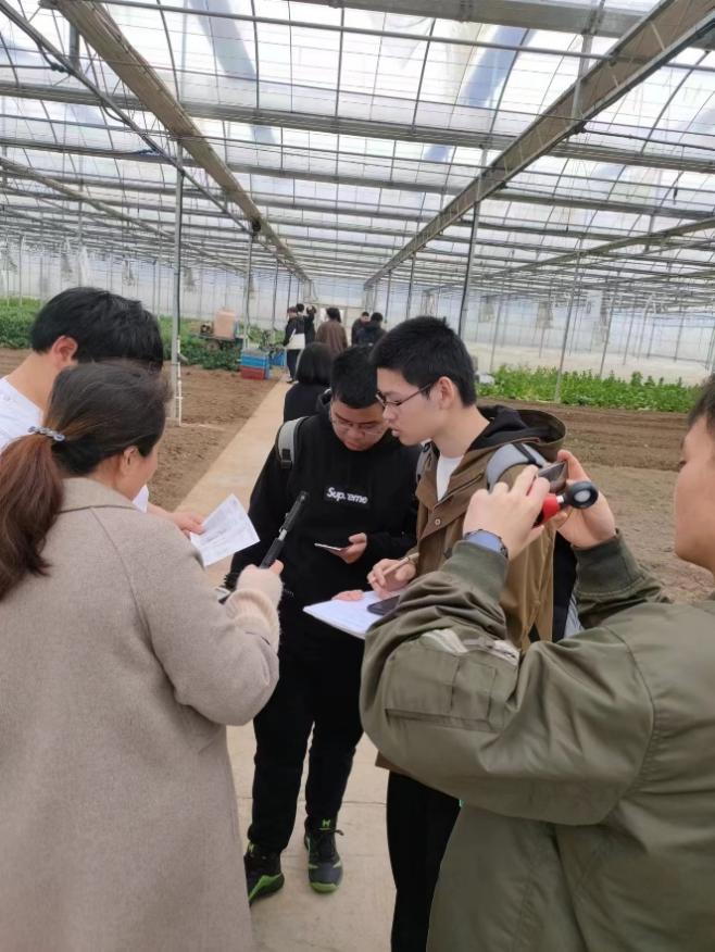 3月20日至21日,教师及学生分2批分别前往校外实践基地——卡纳比庄园进行课程调研。卡纳比庄园负责人带领老师和同学们边参观边从庄园的基本情况、种植区域划分、温室的类型及结构、规划建设情况等方面介绍了庄园的整体情况。同学们根据老师发放的调研任务单,以小组为单位分别选取了2个有代表性的温室大棚,使用自带的温湿度计、光照计、卷尺等测量工具,认真记录、拍照、填写任务单。