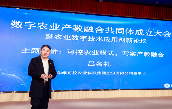 上海市党代表、国家“万人计划”领军人才、上海华维可控农业科技集团股份有限公司董事长吕名礼作《可控农业模式 写实产教融合》为题的主题报告,从政府之惑、产业之痛、环境之难、产教融合现状等多个维度进行分析,并进行了深入的思考探索,提出破解之道,充分发挥华维集团科创实业优势,利用可控农业模式,解决农业产业、农教产教深度融合的问题。