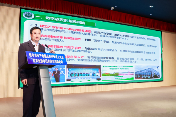 上海农林职业技术学院党委书记蔡红教授以《立足都市数字农业坚持深化产教融合培养“有初心、有农心、有匠心、有匠才”的新一代数字农匠》为题作报告。他指出,数字农业产教融合与“数字农匠”培养是新时代农业发展的重要课题。农林学院直面职教改革难题痛点,以破壁融合发展丰富学校高质量内涵,希望与行业企业、兄弟院校携手建设数字农业产教融合共同体、生物人产教融合共同体、农业数字化育种与种植中心等,建立产学研创一体化的培养体系,积极培养具有创新精神和创业能力的数字农匠,以引领未来农业的发展,为实现乡村振兴、培养“四有”上农工匠,建设都市现代农业贡献智慧和力量!
