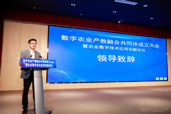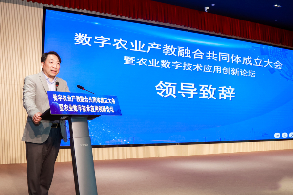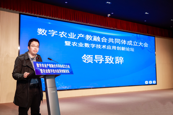 会上,上海市农业农村委员会副主任陆峥嵘对数字农业产教融合共同体成立表示热烈祝贺,他希望数字农业产教融合共同体单位成员围绕“三农”工作发挥纽带桥梁作用,补齐数字农业人才和数字技术应用推广短板,进一步促动数字科技与农业领域的深度融合。上海市教育委员会职业教育处副处长马骏在致辞中对大会的召开表示祝贺,他表示,在中办、国办印发的《关于深化现代职业教育体系建设改革的意见》提出打造行业产教融合共同体的大背景下数字农业产教融合共同体应运而生,农林学院先行先试,与计算机行业协会、相关院校和行业企业一同推动这项工作,具有十分重要的意义。上海市计算机行业协会秘书长裘维东致辞提到,数字农业产教融合共同体的成立,正是我们坚定信念,勇往直前的有力举措。我们将共同打造一个高效、务实的合作平台,推动农业现代化和信息技术产业发展,实现农业的智能化、绿色化、品质化目标。