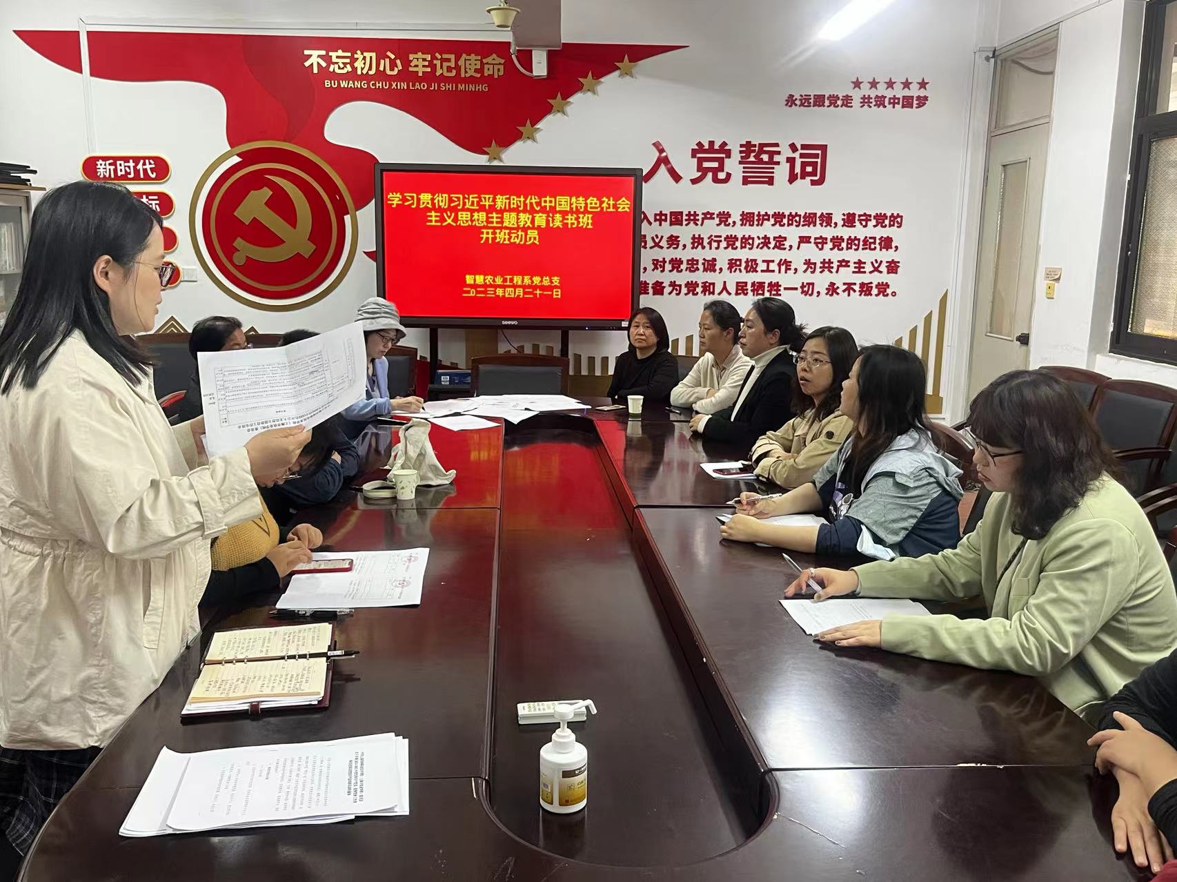 4月21日,智工系党总支在农信楼201会议室开展学习贯彻习近平新时代中国特色社会主义思想主题教育读书班开班动员会。这是智工系党总支深入贯彻落实习近平总书记在中央主题教育工作会议上的重要讲话精神的一项重要举措,是深入开展主题教育的重要内容。会议由党总支副书记陆琳主持,智工系全体党员参加。