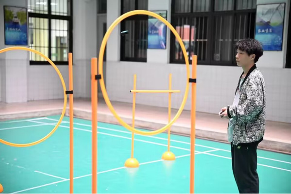 选手须在规定的科目区域内手动操控无人机,按照规定的科目、顺序、方式穿越障碍物。这场集新颖、先进、有趣、竞技性与观赏性并存的比赛项目为校园展现了一场高水平的比拼。在正式开始前,无人机社社长范宇航为学生提供技术指导,让学生充分熟悉无人机的基本操作知识。