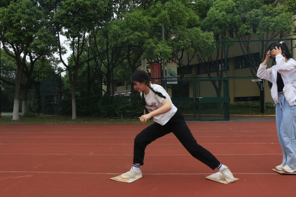 在“袋鼠跳”活动中,主持人魏振娜将“袋鼠跳”与答题模式相结合,培养学生智、体发展,既实现拓展学生对体育知识的认知,又能够展现学生团结协作的体育精神。