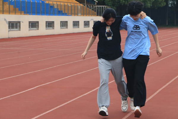 在“两人三足”活动,是以两人为一组,用跳绳把两条腿绑在一起,从起点处出发至终点。若绳子在路上掉落,就必须停下来系好绳子再出发,两人必须同时达到终点,即为完成所有任务。此次活动重要培养同学们团结协作能力。