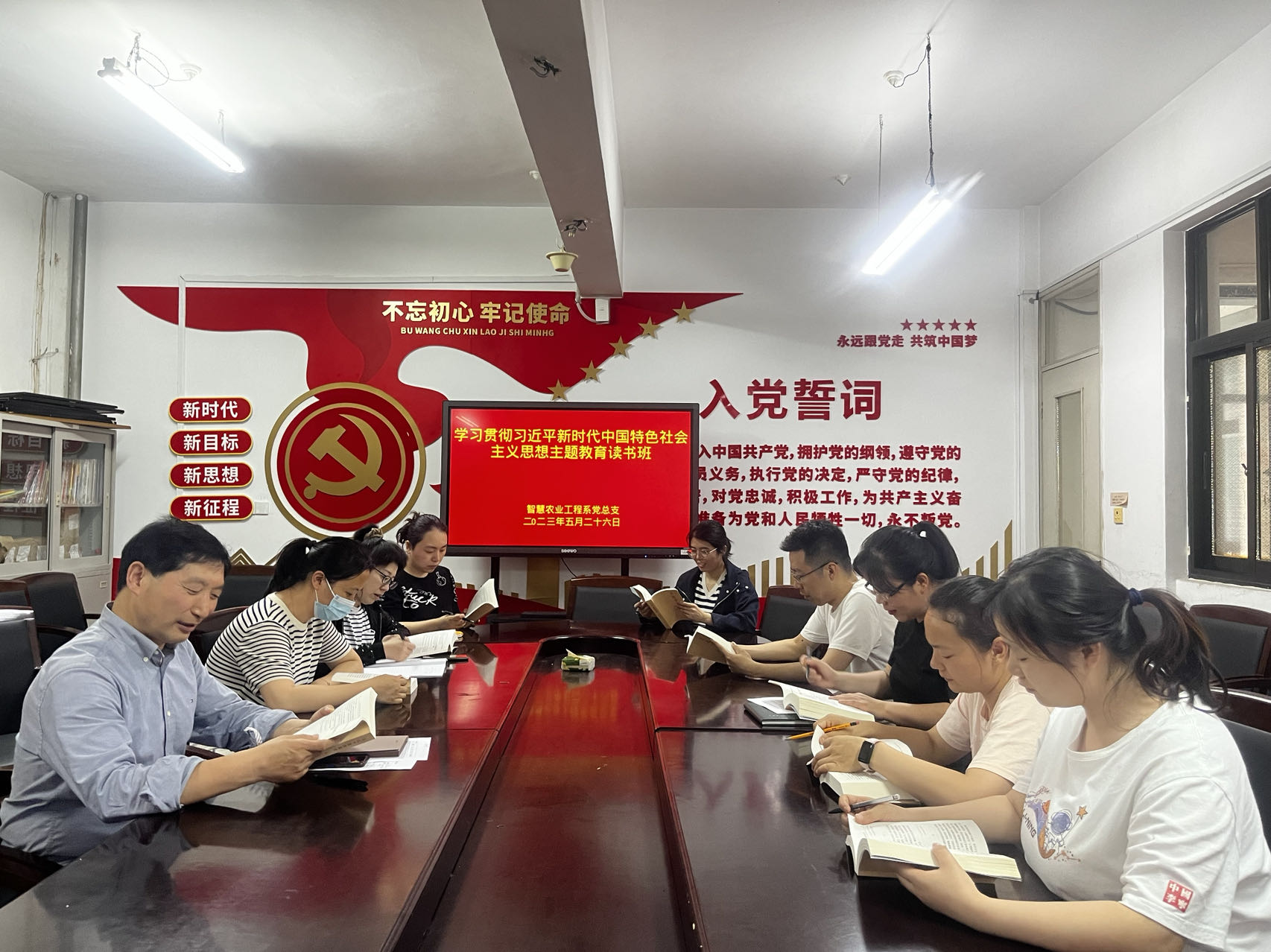 为持续深入学习贯彻习近平新时代中国特色社会主义思想主题教育,引导和推动全体党员教师在学深悟透上下功夫,坚持学以致用,5月26日下午,智工系党总支主题教育读书班开展集中学习,全体党员参加。教师党支部书记姜凤娇主持学习活动。