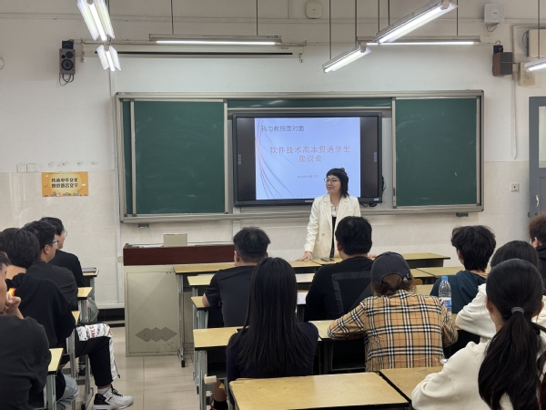 座谈会上,姜教授带领同学们回顾了我国在软件相关领域取得的成就,强调了人才培养的重要性和学科发展的前景。接下来,姜教授分析了当前国际形势及我国在该领域的发展现状,让同学们更加清晰地认识到专业学习的重要性。姜教授鼓励同学们一定要学好专业知识,打牢专业基础,树立考研目标,坚定学习自信。