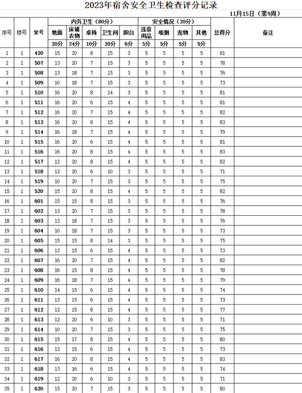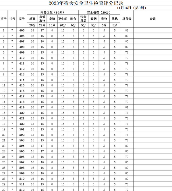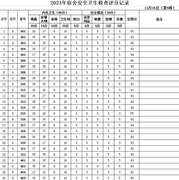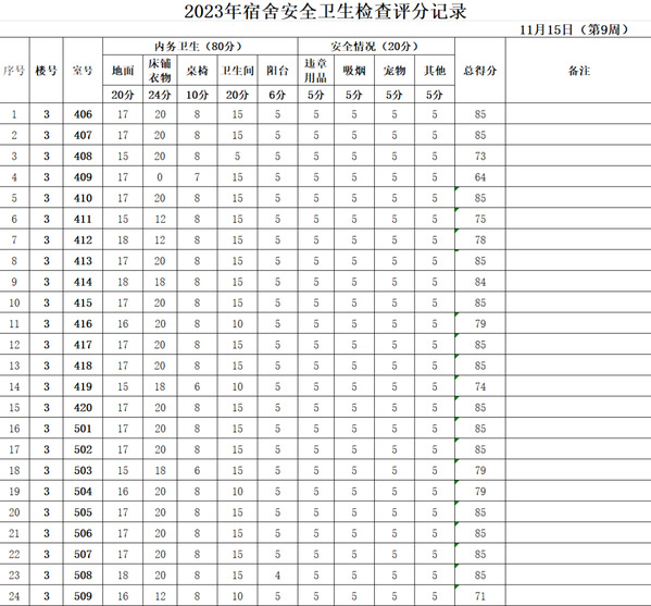 注:以上项目为整体扣分项以寝室为单位扣分。