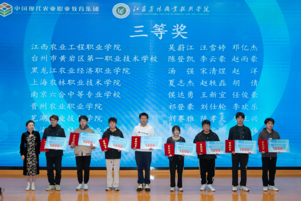 11月18日,首届全国数字农业技术应用技能大赛在江苏农林职业技术学院举行,来自全国各地院校的28支队伍同台竞技,智工系设施农业与装备专业胡倩、赵轶磊、夏志杰获得团队三等奖,李珈慧、任杰获优秀指导教师。