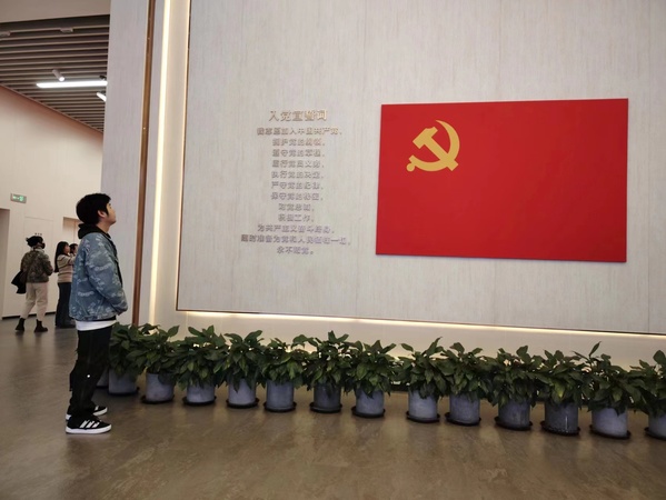 百年风华,初心如磐。在讲解员的讲述下,同学们步入“伟大的开端——中国共产党创建历史陈列”展览,先后参观了“前仆后继·救亡图存”、“民众觉醒·主义抉择”、“早期组织·星火初燃”、“开天辟地·日出东方”、“砥砺前行·光辉历程”等5个板块。从五四运动在中国掀起思想解放之潮,到共产党早期组织在上海成立的星火初燃,从中国共产党第一次全国代表大会在上海召开,到正式宣告成立,同学们通过文物、影像、雕塑和沙盘等方式,系统性地学习了中国共产党诞生的光辉历程和中国共产党在上海的革命实践。