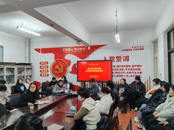 为深入学习贯彻习近平新时代中国特色社会主义思想,充分发挥党员的先锋引领作用,更好地发挥育人功能,帮助学生适应在校的学习与生活,12月1日,智工系党总支在农信楼201室组织开展了“我与党员面对面”暖冬慰问座谈会,全体党员与结对学生参加,座谈会由智工系党总支副书记陆琳主持。