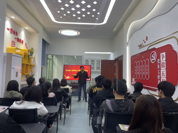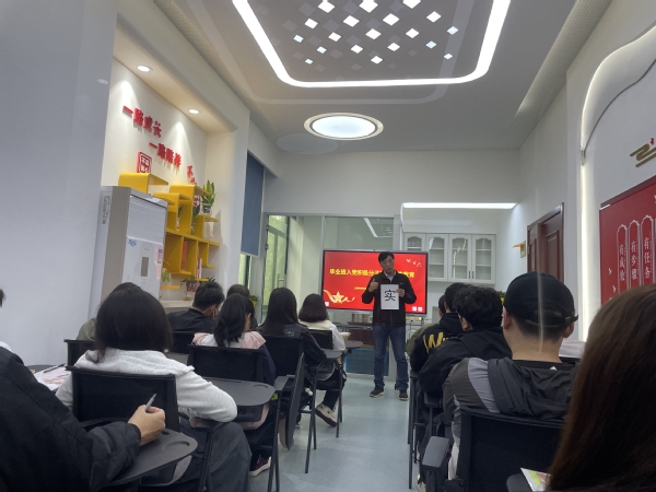 俞锦禄别出心裁以三个字“进、实、思”为切入点,结合丰富的学生管理经验和学院优秀学长学姐成长经历,给入党积极分子提出了三点建议:一是要不断前进,积极追求思想进步,知识进步;二是要低头做人,老实干事,不断积累探索;三是要善于发现问题,沉下心来,学会思考解决问题。俞锦禄还鼓励同学们离校之后要继续在自己的工作岗位上建功立业,不断发挥先锋模范作用,听党话跟党走,传承报效家国的理想信念,以高远使命升华青春梦想,争取早日加入中国共产党。