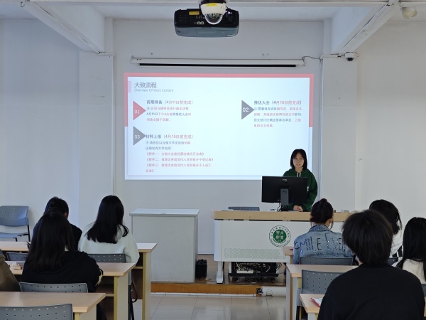 团总支副书记颜瞿乙和学生会副主席陈宇祥为在场学生干部详细培训了“五四”评优推荐流程及入党积极分子团推优的工作流程,明晰具体申请条件,交待事项细节,勉励同学们积极迎接新挑战。