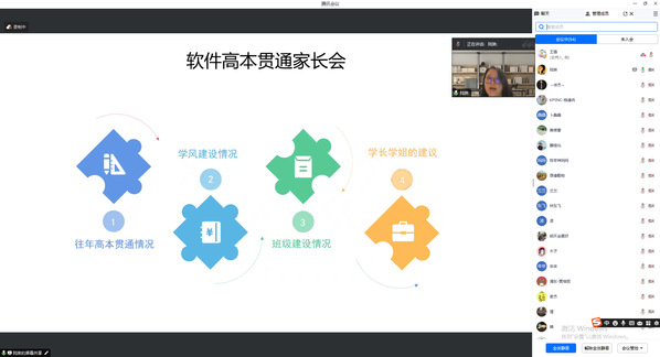 赵文旻详细解读了软件技术(高本贯通)专业的培养方案、课程设置、实践教学等环节,并就软件技术高本贯通培养模式和学籍管理办法进行介绍,让家长们对学生的学习过程有了更深入的了解。她还从培养目标、学习管理、学籍管理等方面强调了学生需要重视专业课学习,打好基础,以便顺利升本。同时,还对转段要求进行了介绍。陆琳就往年软件技术高本贯通转段情况、入校以来学风建设及综合素质能力培养等学生管理方面的情况展开介绍,指出目前学生对学习的紧迫感还不够重视,学习的积极性还有待加强等,并有针对性地提出了相关工作计划及建议,同时希望家长能够与学校一起共同关注学生的成长,形成家校共育的良好局面。