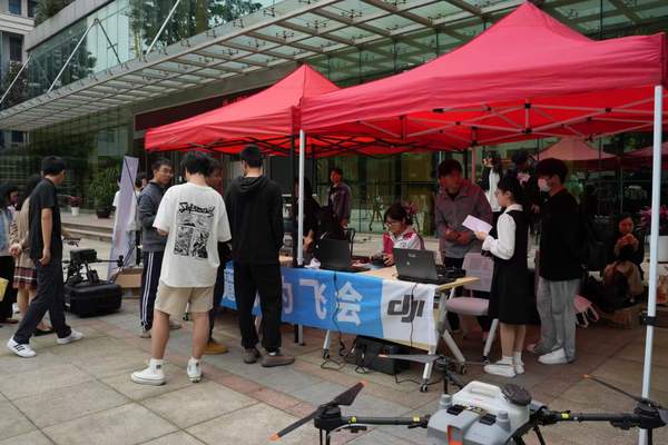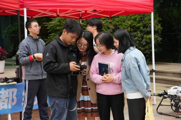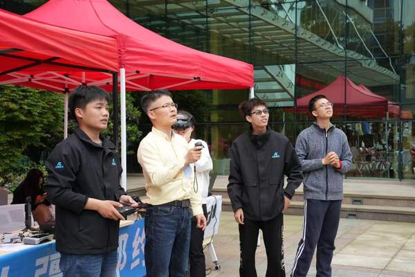 活动中,由上海锋则航空科技有限公司工作人员进行讲解飞行器结构知识、科学原理和应用场景,使同学们掌握必备知识及关键技能。在无人机展示区,同学们通过观摩各式无人机,近距离了解无人机构成及功能;在虚拟飞行体验区,同学们通过电脑系统上的模拟飞行器,模拟驾驶无人机起落飞行,增强沉浸体验感;在现场飞行体验区,同学们争先恐后的体验真实无人机飞行,过足了“飞行瘾”。更有无人机喊话宣传,现场科技氛围浓厚,同学们纷纷上手,在实际行动中感叹科技的神奇和魅力。