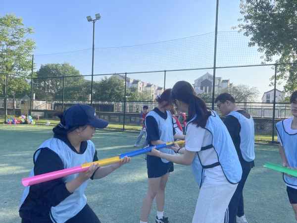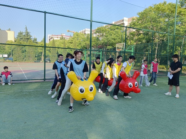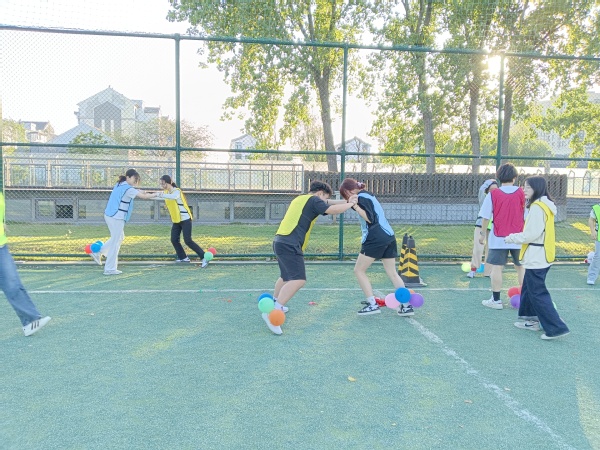 活动中,王璐以拓展训练游戏之“生日链”破冰,增进团队成员之间的了解和沟通,通过非语言的交流让团队成员体会到语言沟通及肢体语言沟通的魅力。暖场活动中,以“松鼠搬家”游戏让团队成员在游戏中体验竞争和被淘汰的残酷,感受合作的力量,同时开拓学生干部的思维方式,让学生在竞争中体验双赢的快乐。分组游戏中,学生干部们通过参加各种拓展训练项目,如毛毛虫、珠行万里、公鸡母鸡下蛋抖球、踩气球大战等,锻炼了团队合作能力和解决问题的能力。在毛毛虫、珠行万里项目中,学生干部们需要相互协作,充分发挥各自优势,共同完成任务。在“公鸡母鸡下蛋抖球”项目中,学生干部们面对挑战,勇于突破自我,体验到成功带来的喜悦。在踩气球大战项目中,学生干部们学会了信任同伴,克服恐惧,增强自信心。