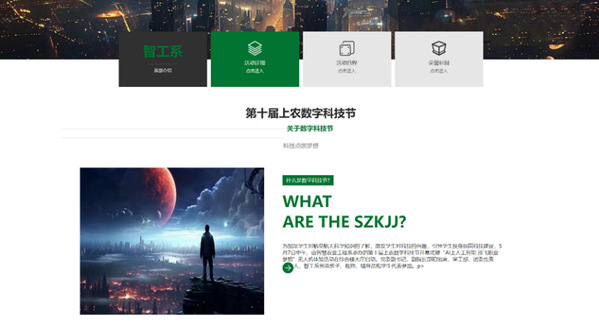 此次比赛,参赛者提交了精美的页面设计作品,他们借助网页,围绕“数字科技节”主题表现出心目中最美的“上农科技”。经评审,最终有10项作品脱颖而出,成为了本次比赛的优胜作品。