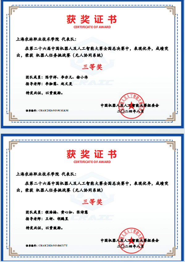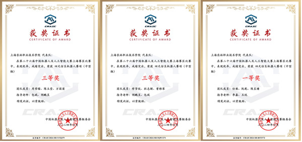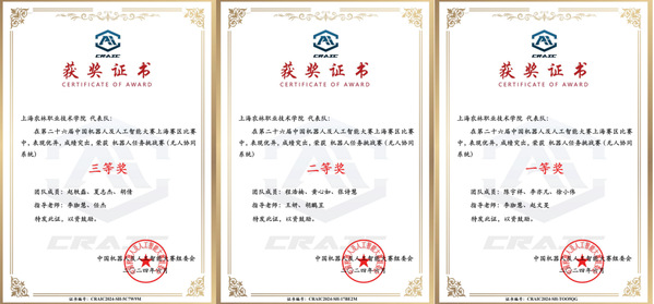 本届大赛分为省赛和国赛两个阶段。在省赛阶段,上海赛区吸引了上海交通大学、同济大学、华东理工大学、东华大学、上海大学等近二十所高校的400余支队伍参赛。作为为数不多的高职院校之一,我院通过校内选拔赛,最终选派了10支队伍参加四足仿生机器人挑战赛(中型组)和机器人任务挑战赛(无人协同系统)两个项目,与本科生、研究生同台竞技。最终,我院在上海赛区取得了一等奖2项、二等奖1项、三等奖3项的优异成绩,并有2支队伍成功晋级全国赛。