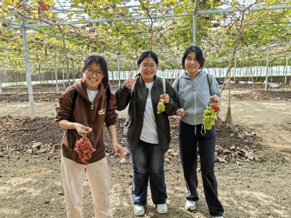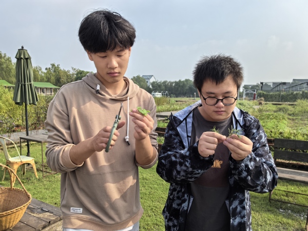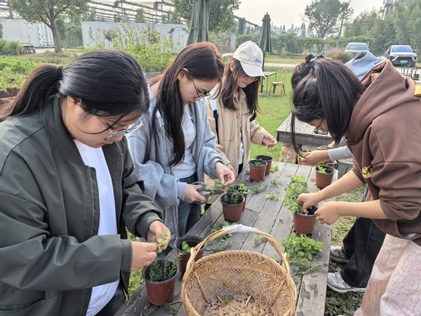 下午,大家来到内府农场。在这里,学生们亲手帮助农场主采摘葡萄,品尝新鲜甜美的果实,感受到了丰收的喜悦。在农场主的讲解下,他们还认识了柠檬香茅、百香草、芳香万寿菊等多种香草,了解了这些植物的药用或食用价值。随后,学生们在农场主的指导下,亲手扦插了迷迭香和薄荷,体验了农业生产的乐趣。