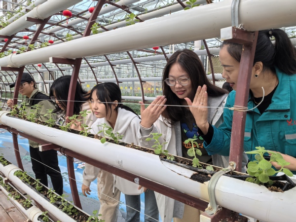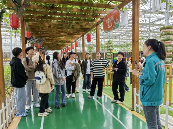 上午,学生们首先来到了金山九丰农场。在农场工作人员的带领下,他们参观了现代化的农业生产设施,包括智能温室、水培系统、自动化灌溉设备等。这些高科技农业技术的应用,让学生们大开眼界,深刻感受到了现代农业与传统农业的巨大差异。在参观过程中,工作人员详细介绍了各类农作物的生长周期、种植技巧及市场价值,使新生们对农业生产有了更加全面和深入的了解。