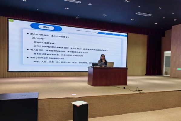 李苏琳为同学们详尽讲解了实习系统的操作步骤,并就实习期间的注意事项进行了深入解析。辅导员张峰源也在活动中与同学们进行了深入互动,了解他们在实习过程中的感悟与难题,并给予了针对性的指导和建议。
