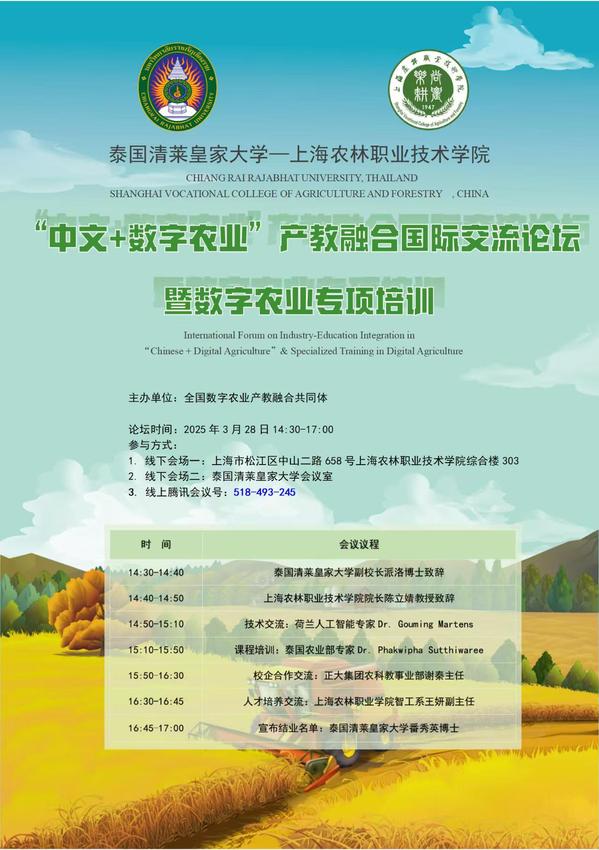 “中文+数字农业”产教融合国际交流论坛暨数字农业专项培训公告