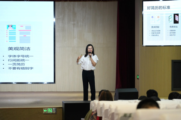 许老师深入剖析好简历的四大标准:契合岗位需求、突出个人优势、逻辑清晰有序、设计简洁美观。她指出,HR浏览一份简历平均仅需3- 10秒,因此求职者需精准锚定岗位关键词,巧妙放大自身亮点,同时用统一规范的排版、精炼的文字呈现核心信息。
